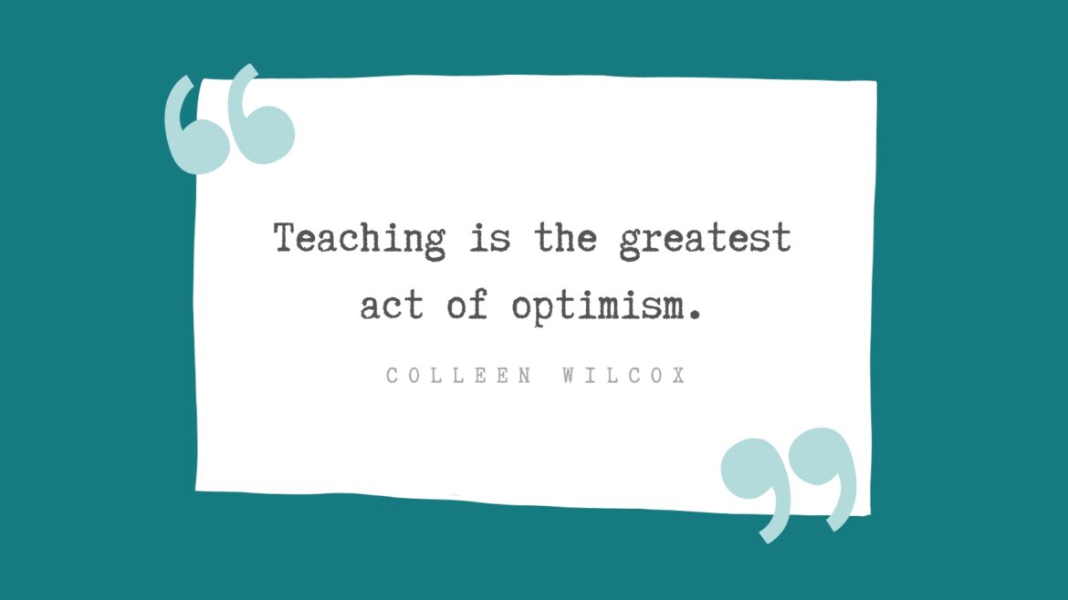 59. Teaching is the greatest act of optimism. —Colleen Wilcox