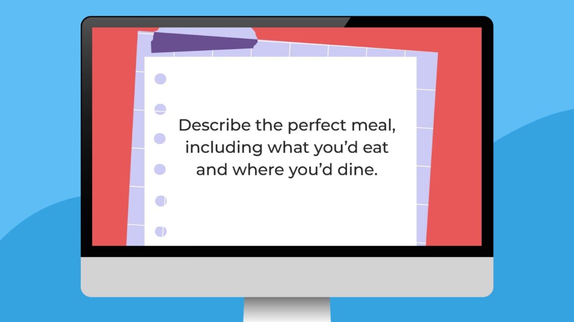 57. Describe the perfect meal, including what you’d eat and where you’d dine.