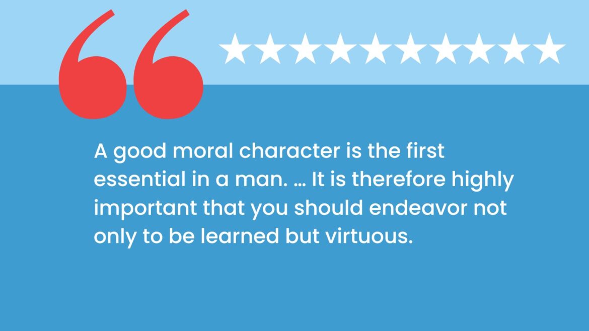 A good moral character is the first essential in a man. … It is therefore highly important that you should endeavor not only to be learned but virtuous.-george washington quotes