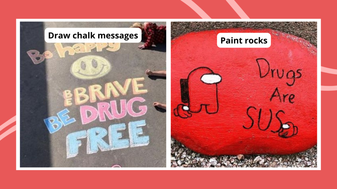 Spread your drug-free message in the community with painted rocks. Each student can decorate their own, then leave them around town for others to find.