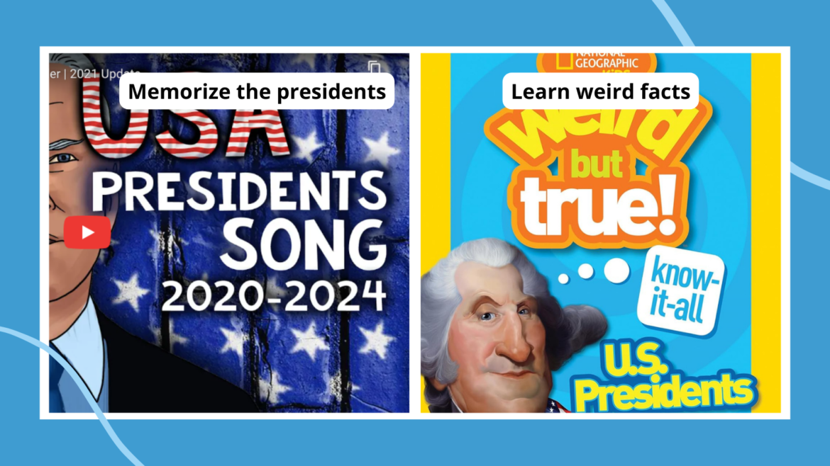 Memorizing the names of the presidents in order may not be a skill needed every day. But if you ever want to be a contestant on Jeopardy, you’ll be glad you know! Plus, singing in class is fun!