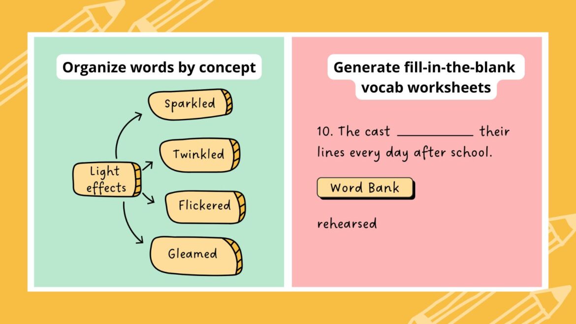 Dr. Hiebert advocates approaching vocabulary learning with the goal of helping students build “collections” of words they know. This approach helps kids both deepen their understanding of word meanings and retain them. AI can quickly help teachers create lists of connected words and create visuals about word relationships.