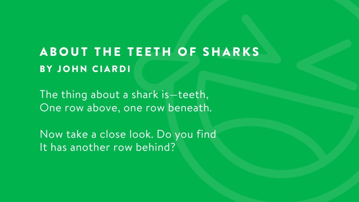 A poem called About the Teeth of Sharks by John Ciardi as an example of funny poems.