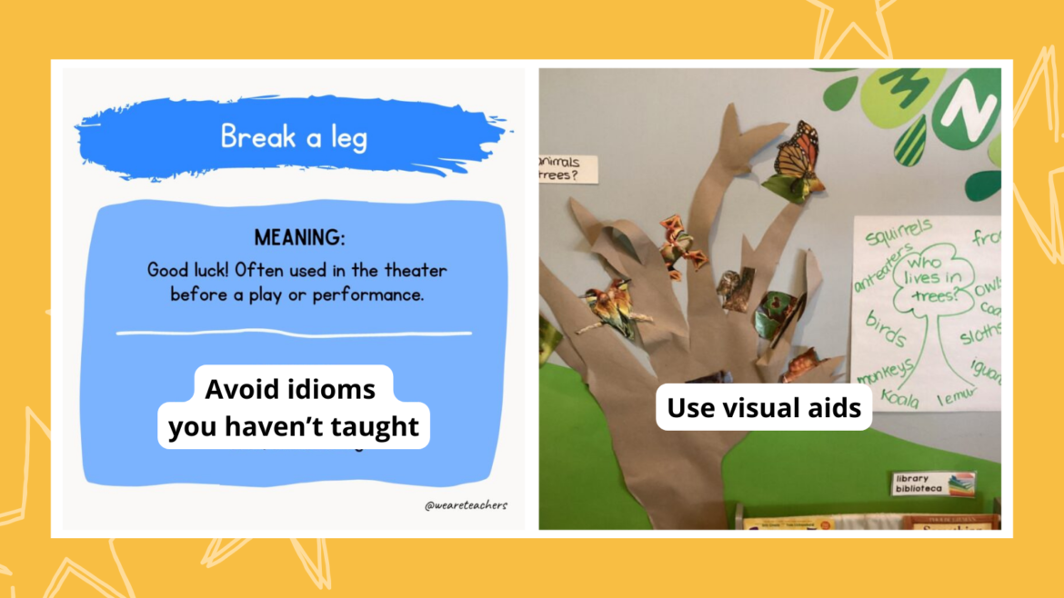 While this seems like a great explanation initially, your MLLs might not understand what is being explained. The content can either be rewritten to remove the use of figurative language, or you could use a visual demonstration of what the text is saying to show the students the actual meaning of the text.