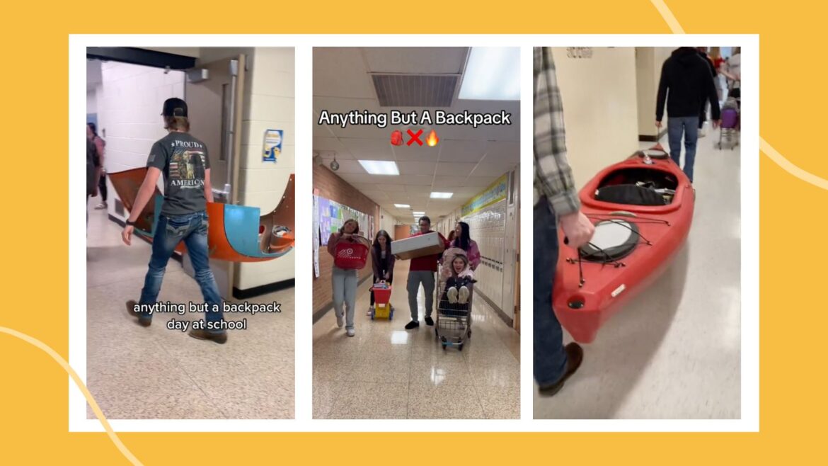 “Anything but a Backpack” actually got started as a proposed solution to a serious problem. In September 2021, Jefferson School District 251 in Idaho banned backpacks after a gun was found in a 13-year-old middle school student’s backpack (it was the second gun-related incident at the school in the same year). Following the ban, students staged a tongue-in-cheek protest by bringing their books and materials in shopping carts, strollers, and ice chests. Superintendent Chad Martin took it in stride that “it was good to see the kids turning it into a positive thing.” The TikTok video went viral, and the hashtag #anythingbutabackpack was born.
