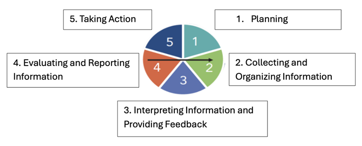 In the evaluation phase, teachers and/or students place a “value” or an appraisal on the extent to which their classroom and student targets and goals have been met and the best ways for communicating that information (assessment of or as learning). In reporting information, perhaps to students or other educators working with multilingual learners, you should always think about the most viable option; you may wish to translate the information for families and students, graph student growth with an accompanying explanation, or give personalized feedback to a student (assessment for learning).