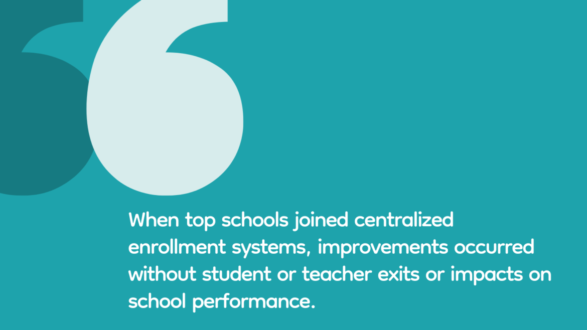 - Stable School Performance. The introduction of a centralized enrollment system did not detrimentally affect the schools’ performance ratings or accountability measures.