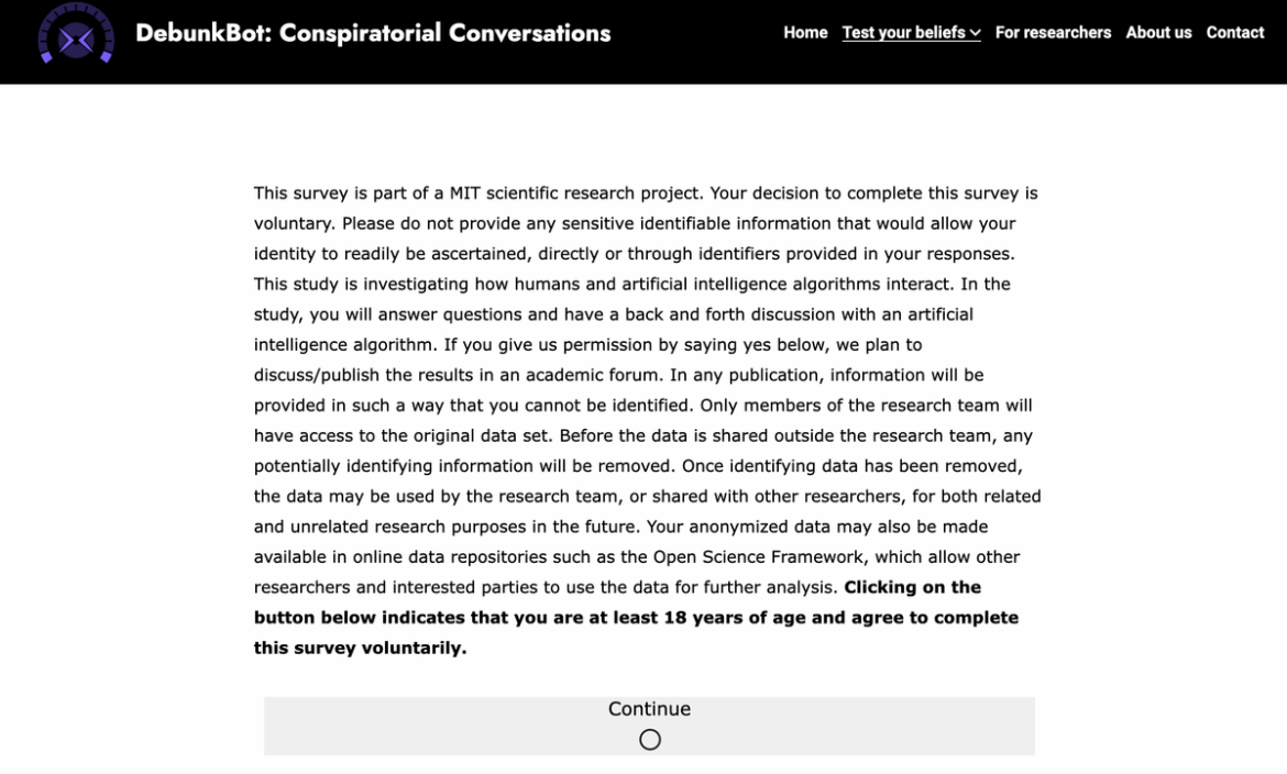 I bring all this up because DebunkBot is distinctly different from any other AI tool I’ve come across. Created by academics at MIT, Cornell, and American University, and unveiled in what still feels like its beta form, DebunkBot is designed to help “debunk” conspiracy theories.