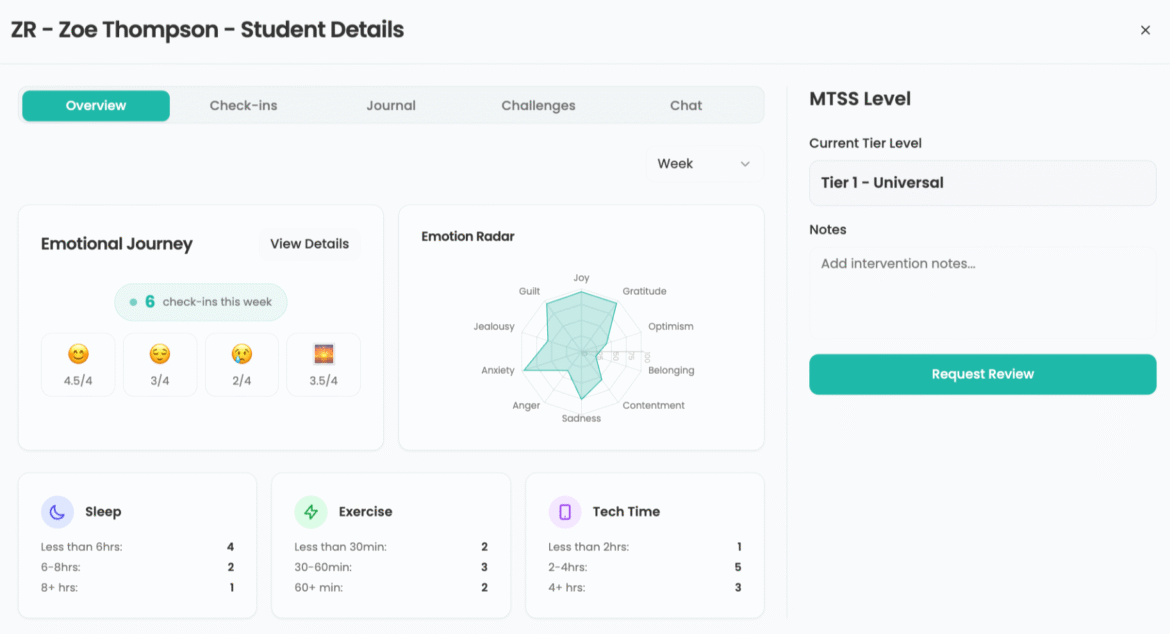 “We have nothing that helps us manage or regulate or track these social emotional skills,” he says. “We believe that emotional regulation, resilience, and interpersonal effectiveness aren’t optional skills; they are essential for student success and lifelong well-being.”