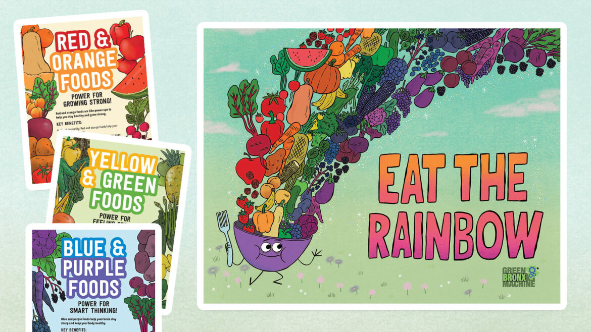 Eating a variety of colorful fruits and vegetables is one of the easiest ways for kids to stay healthy and strong. To help students visualize this, we created a set of Eat the Rainbow mini posters in partnership with our friends at Green Bronx Machine. At a glance, students can easily get tasty food ideas for red, orange, yellow, green, blue, and purple fruits and veggies.