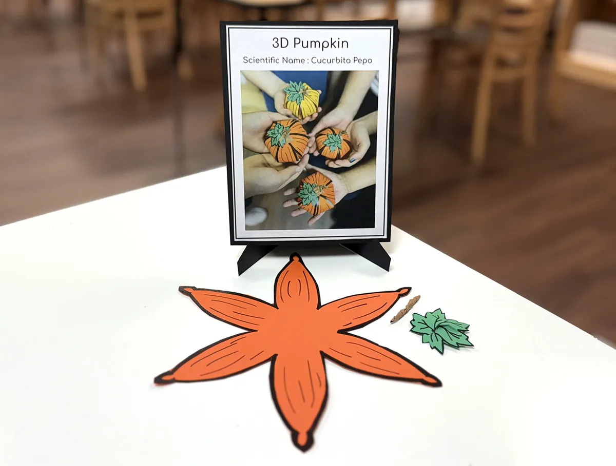 Fall is the perfect time to teach students about the different parts of the pumpkin and its life journey: from seed to sprout, vine, blossom, and finally the squash itself. To make this lesson more interactive, students can make a 3D pumpkin by either creating their own template using a black marker pen on orange cardstock, or by using a pre-printed template of a pumpkin on orange cardstock.