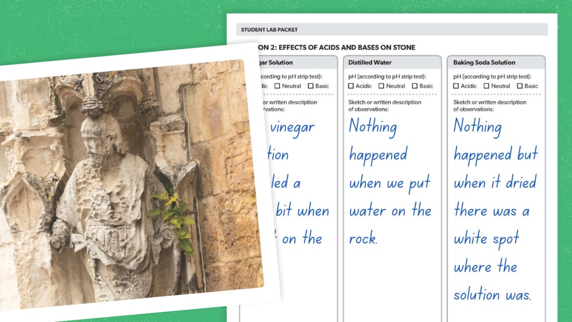 Deep connections and understanding take place when students see how what we’ve been teaching them impacts the real world. That’s why this experiment is a perfect complement to your lessons on acids and bases. It gives students a hands-on opportunity to explore the real-world impact of acid rain. By observing its effects on both natural and man-made materials, students can connect abstract chemical concepts to environmental science, deepening their understanding and making the topic more engaging and relevant.