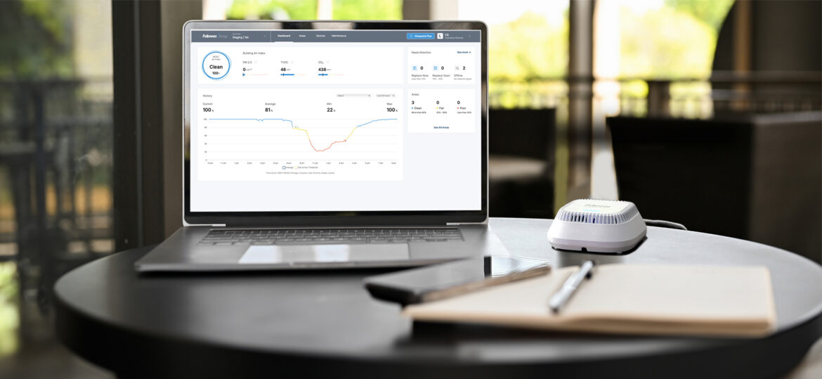 Fellowes free indoor air quality assessment includes placement of their Signal IAQ monitoring device in key areas you’d like to examine. The assessment will track the area’s overall air quality over a designated period including the following metrics: