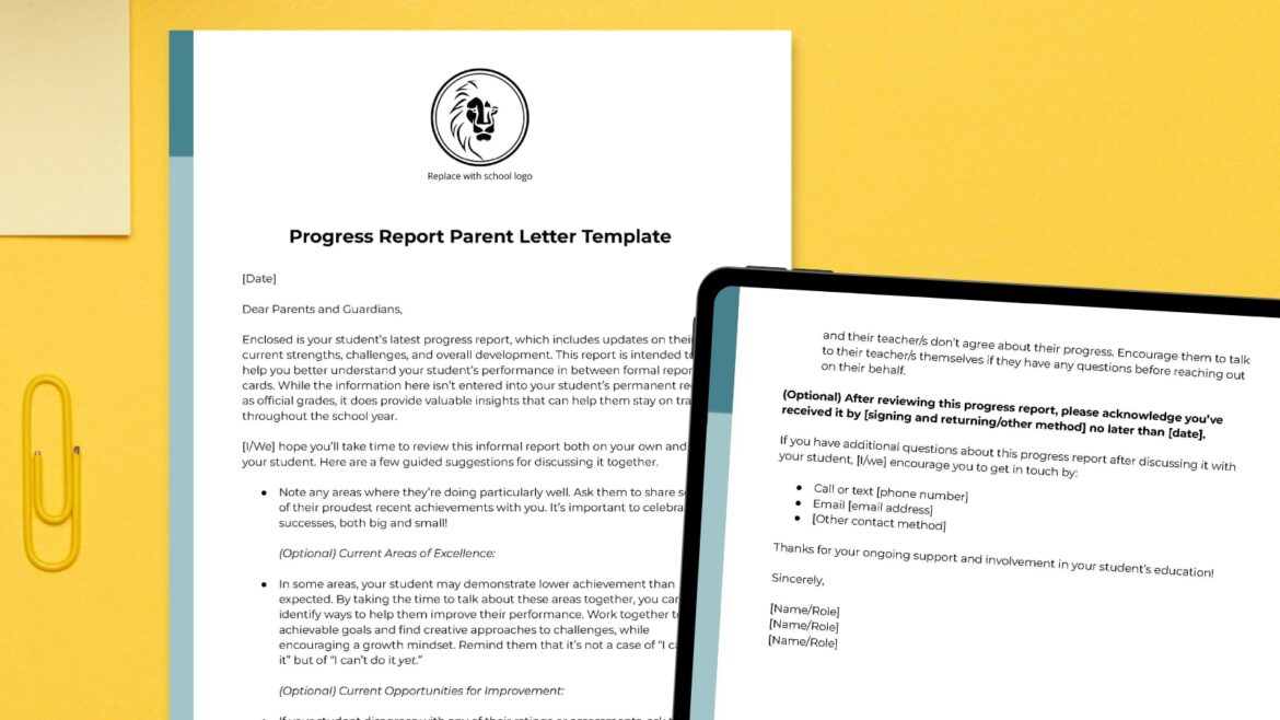 Free Progress Report Parent Letter Template (Customizable)