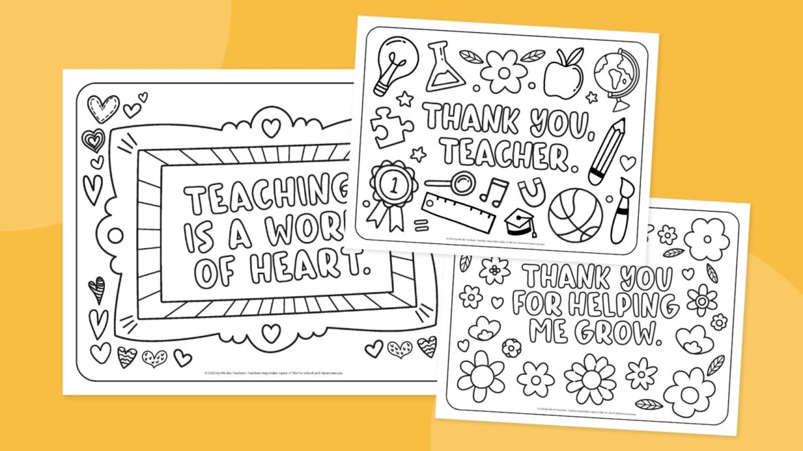 Use these coloring pages as end-of-year gifts, a quick classroom activity, or a sweet surprise during Teacher Appreciation Week.