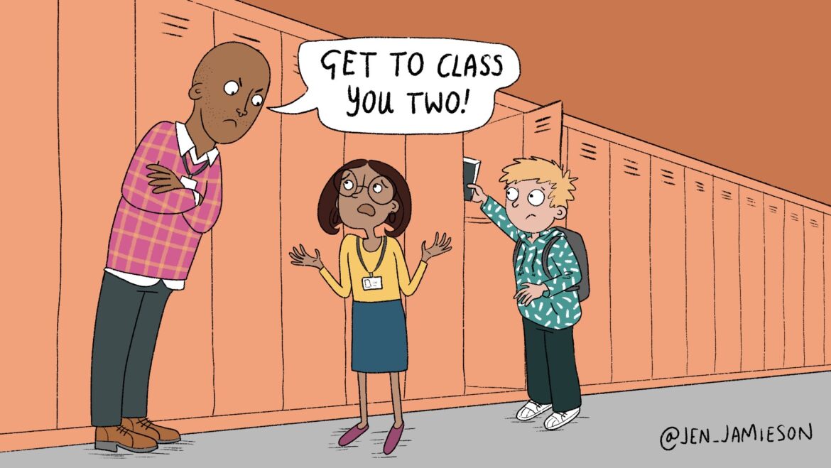 To be clear, this is not your fault. I had a friend with this issue, and fellow teachers’ advice automatically jumped to “Maybe stop wearing your hair like the kids do,” or “Try dressing more professional.” I’m not going to suggest that. Plenty of teachers wear jeans and have trendy hairstyles. No one tells them to make big changes to their hair or wardrobe.