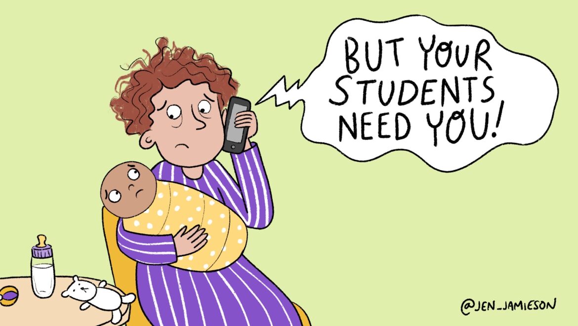 I actually took the fall semester off with both of my children, and it was awesome. Here’s an honest realization I had about missing the beginning of the school year: It didn’t matter if it was more challenging. I couldn’t change when my baby was due. Yes, I love my job and my students, but I am not ashamed to say that I love my children more. I also care more about my ability to return to the classroom prepared, which is a luxury that, sadly, not everyone has.