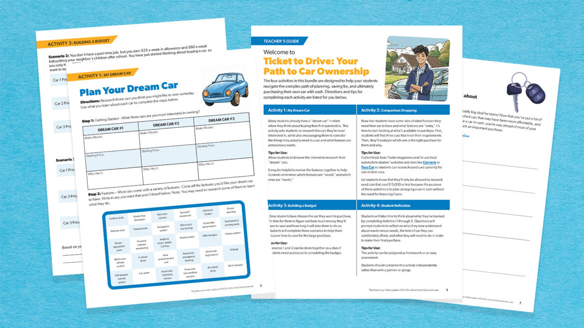 Buying your first car can be a daunting financial milestone. As our students begin to daydream about cars they’d like to buy and start saving for the one they’ll ultimately purchase, we have the opportunity to help them feel prepared and confident as they navigate the financial realities of purchasing their first car. So, how can we take students from daydreaming to making an informed financial decision and reaching their goal? Check out the Ticket to Drive: Your Path to Car Ownership lesson bundle.