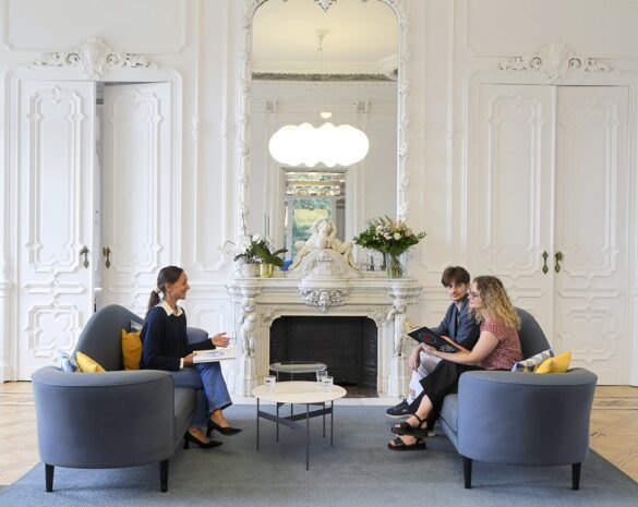 Located in the ISB’s heritage-protected chateau building, the new spaces showcase ISB as a school of the future, forward thinking yet rooted in tradition, stability and good governance. Through considered design, the experience for visitors extends far beyond the traditional base offering. Visitors are placed at the centre of the experience and every aspect of their interaction with the spaces was considered in fine detail. The spaces welcome them and, together with the admissions professionals, put them at ease during a time which can sometimes be an emotional encounter. Visitors are able to choose, connect and collaborate and the spaces are designed to reflect ISB’s egalitarian ethos – `everyone included´.