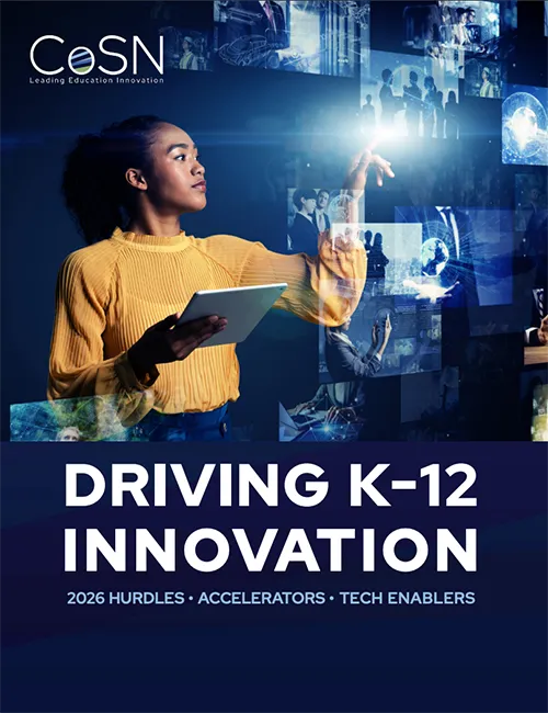CoSN, The Consortium for School Networking recently released its annual 2026 Driving K–12 Innovation report, identifying the top “Hurdles” (challenges) schools must overcome, “Accelerators” (mega-trends) driving innovation, and “Tech Enablers” (tools) transforming teaching and learning this year.