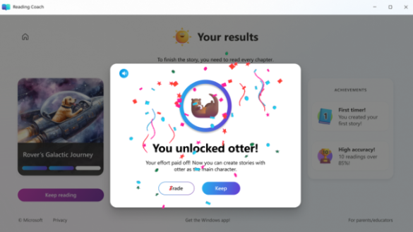 As a new reading tutor from Microsoft, Reading Coach uses cutting-edge generative AI technology to create a personalized reading experience for each student/user. Students can choose a character and a setting for the story, and a reading level at which they want to read. Reading Coach takes it from there.