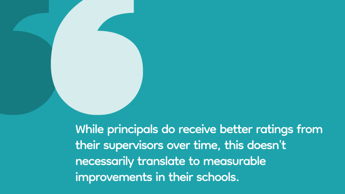 The research is clear that teachers get better as they gain experience in their jobs. Their students achieve more. We don’t observe the same relationship for principals. As principals gain years of experience, their supervisors’ evaluation ratings increase, but we don’t see those same returns in improved school outcomes like teacher retention or student achievement.