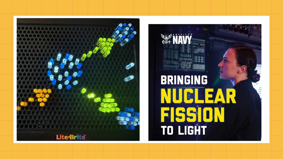 How do you make something as invisible (and powerful) as nuclear fission come alive for your students? With this hands-on lesson from America’s Navy, your class will see the chain reaction that powers submarines and aircraft carriers. Using Lite-Brite boards, students model how splitting a single atom releases massive energy. It’s a fun, unforgettable way to explore the science behind nuclear power!