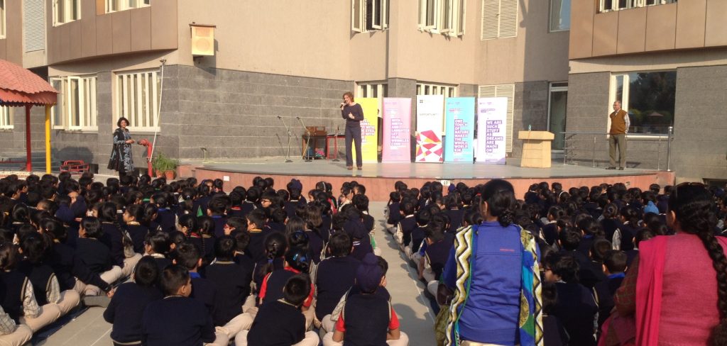 Whilst at the start it was hard to get them talking, now it’s hard to stop them. Story composition itself will take, in total, six minutes, then work shifts to refining, rehearsing and finally performance as each group presents an entirely new story to their peers. This classroom could be anywhere in the world.