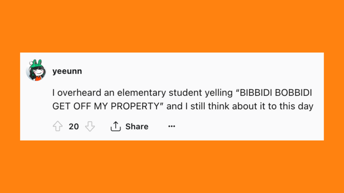 “I overheard an elementary student yelling, ‘BIBBIDI BOBBIDI GET OFF MY PROPERTY!’”