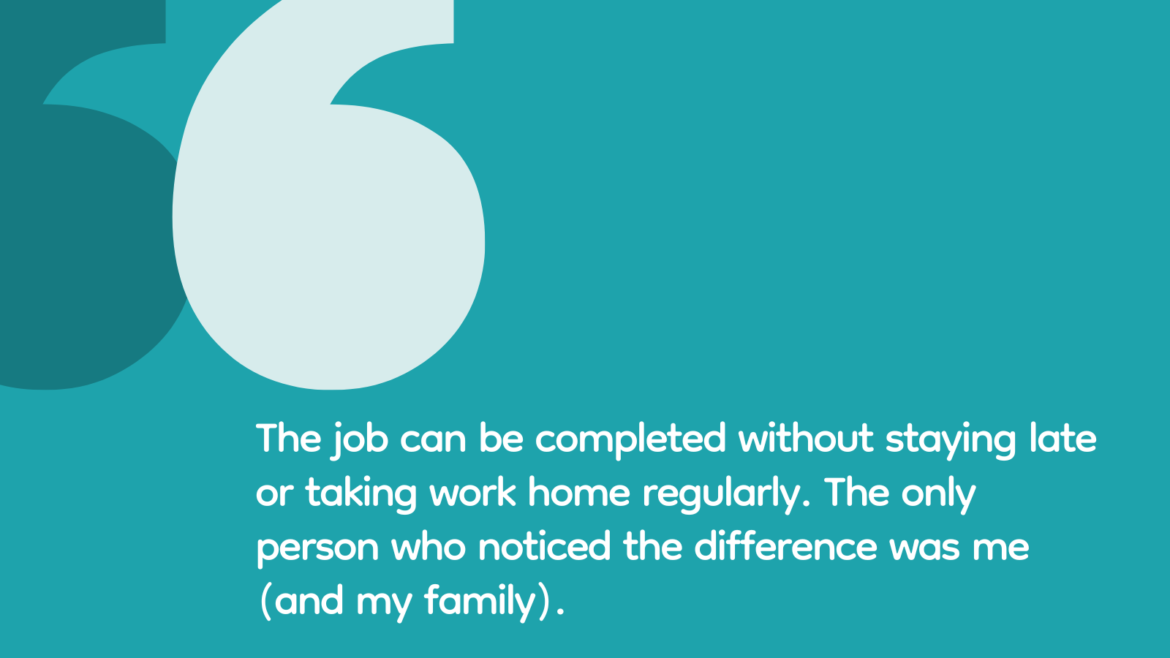 “Working 80 hours a week is bad for me and my family. Going on year 16 and no more ‘do it all’ attitude.” —Michelle M.