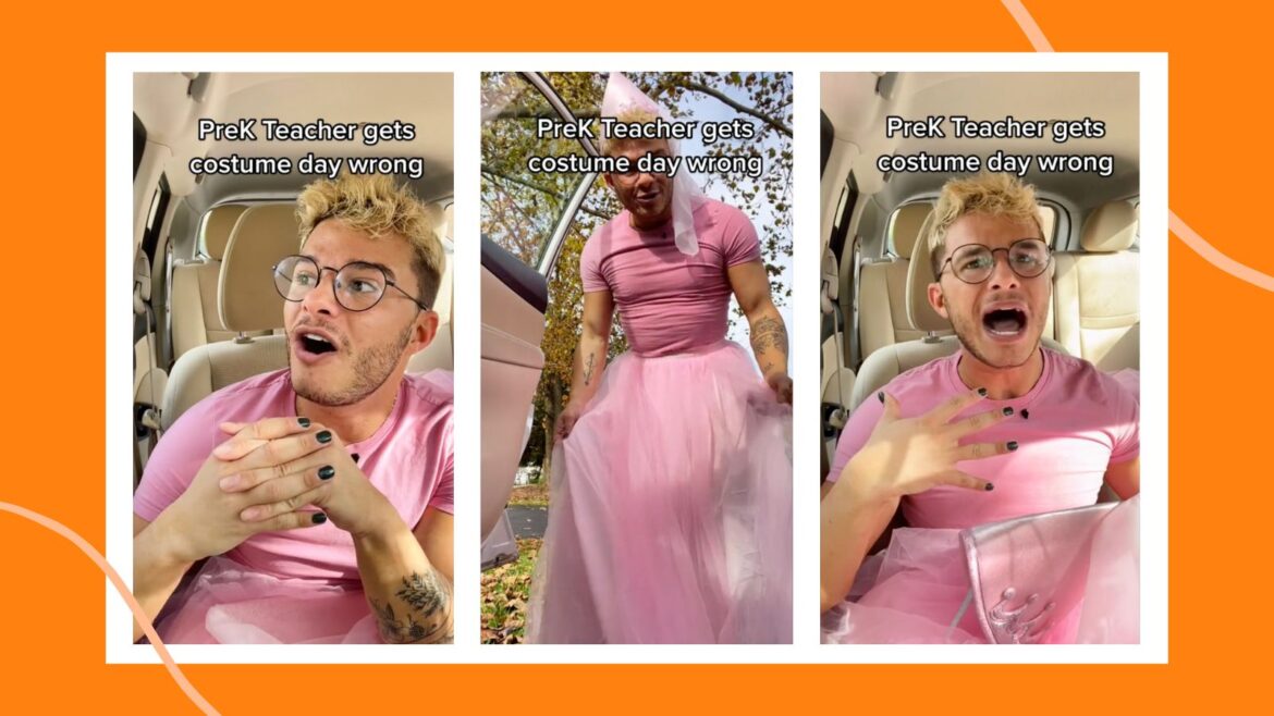 Last year, this nightmare became a reality for @mrwilliamsprek, a TikTok creator and pre-K teacher. Thinking that teachers would be dressing up on the Friday before Halloween as per his last school’s practice, he headed off to school in full princess glam (he let his class vote on his costume).