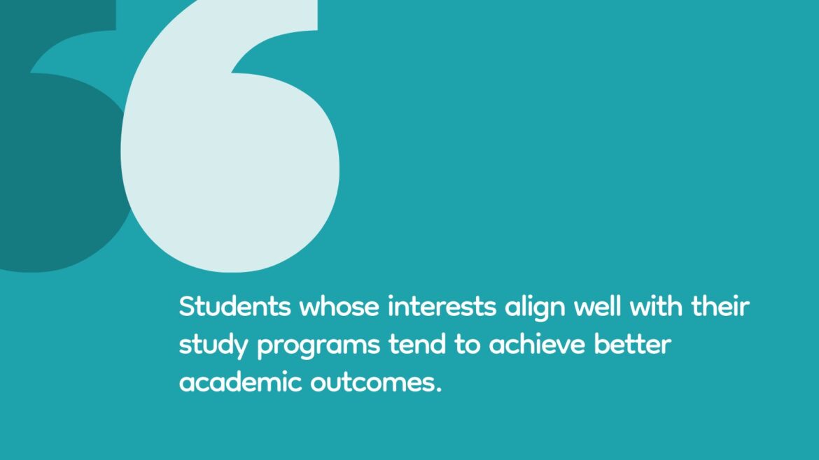 - Positive predictor of academic achievement. Students whose interests align well with their study programs tend to achieve better academic outcomes.
